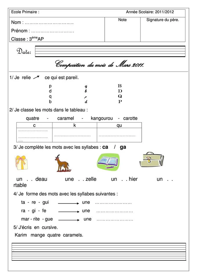 السنة الثالثة ابتدائي 0 Composition de français 3ap 2eme trimestre ادمين اخر تحديث : اختبارات الفصل الثاني في مادة اللغة الفرنسية للثالثة ابتدائي Composition de français 3ap 2eme trimestre موقع السنة الثالثة ابتدائي الجيل الثاني بنك الفروض و الاختبارات لجميع المواد و المستويات بنك إختبارات السنة الثالثة 3 ابتدائي الجيل الثاني اللغة الفرنسية للسنة الثالثة ابتدائي الجيل الثاني ساهم في خدمة التعليم في الجزائر و أرسل لنا ملفاتك لننشرها باسمك على موقع سلسبيل للتوظيف و التعليم و ذلك عبر الوسائل التالية: صفحة سلسبيل التعليمية على فيسبوك صفحة سلسبيل للتوظيف و التعليم على فيسبوك اتصل بنا تعديل المقال الأقسام السنة الثالثة ابتدائي Français 3AP مقالات قد تهمك تعليقات